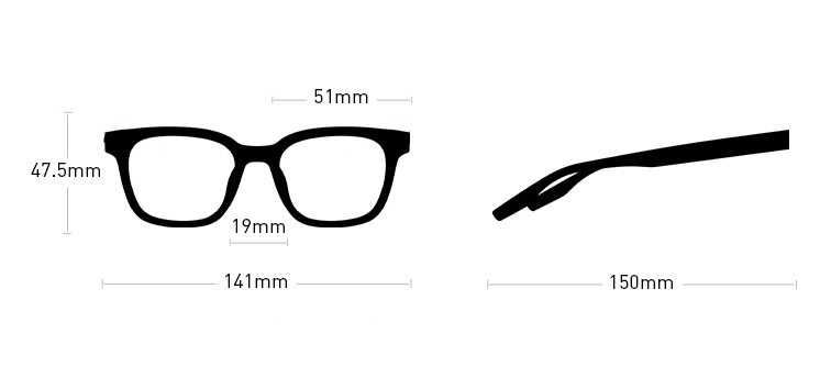 - Kích thước gọng: 51mm (tròng kính) x 19mm (cầu kính) x 150mm (càng kính)