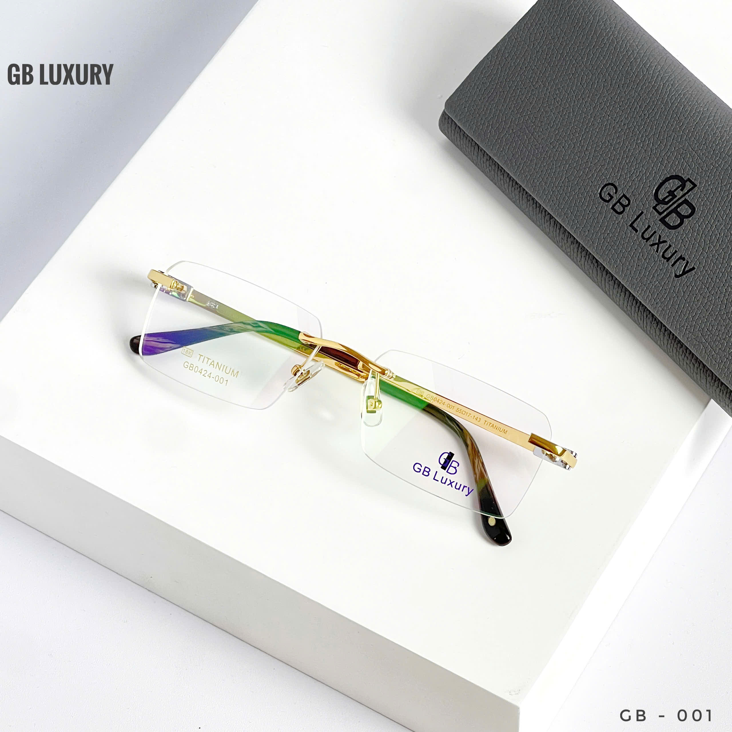 GB Luxury GB0424-001 – Kính Không Gọng Titanium Mạ Vàng 18K Cao Cấp