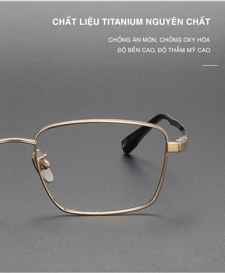 - Tính thẩm mỹ: Gọng kính titanium thường có thiết kế tối giản và hiện đại, tạo ra một vẻ ngoài thanh lịch và sang trọng. Chất liệu titanium cũng cho phép tạo ra các gọng kính mỏng và nhỏ gọn, tạo cảm giác tự nhiên và không che khuất khuôn mặt.