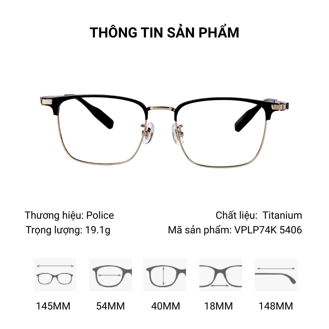 Gọng Kính Vuông Police VPLP74K Tem Chính Hãng 101