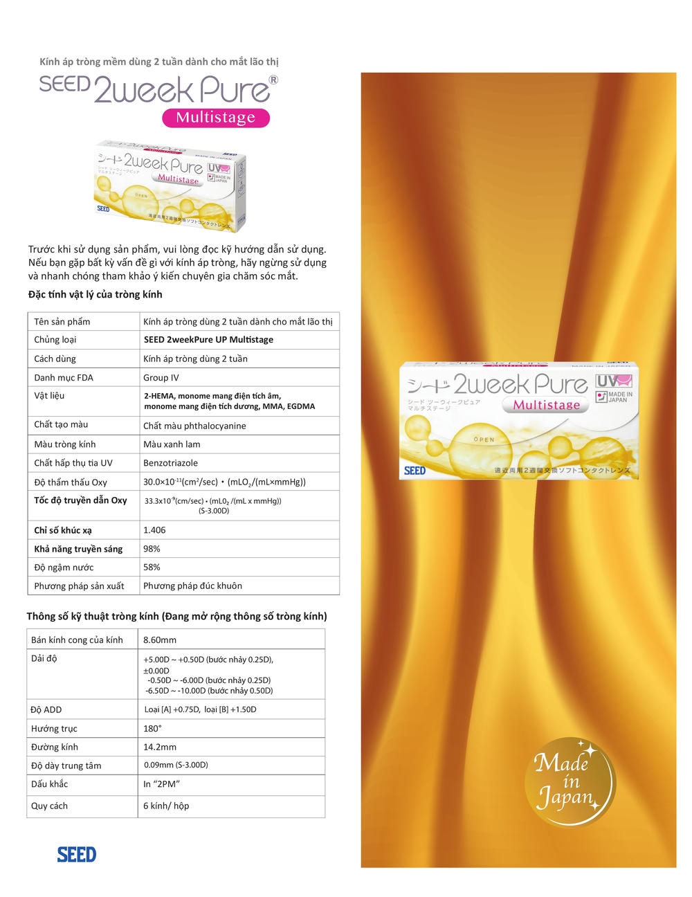4. Thông số kỹ thuật chi tiết của SEED 2weekPure UP Multistage