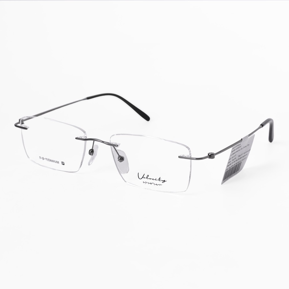 Điểm gây ấn tượng đầu tiên của Velocity VL281084 nằm ở thiết kế không gọng chữ nhật hiện đại, giúp gương mặt trông gọn gàng và sáng hơn khi đeo. Phần tròng được khoan tinh xảo, kết hợp với cầu kính và càng kính thanh mảnh, tạo cảm giác “đeo như không đeo” – rất phù hợp với dân văn phòng, học sinh – sinh viên hoặc những ai yêu thích phong cách tối giản.
