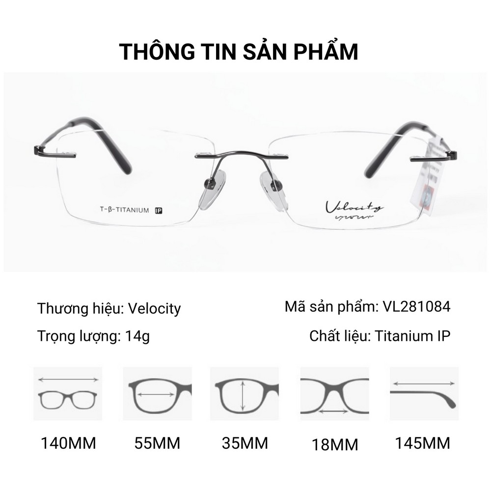 Velocity VL281084 Kính Không Gọng Chữ Nhật – Tem Chính Hãng 101