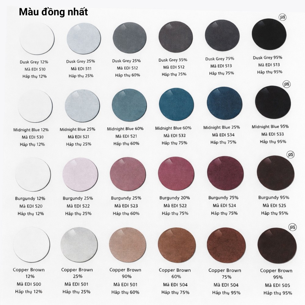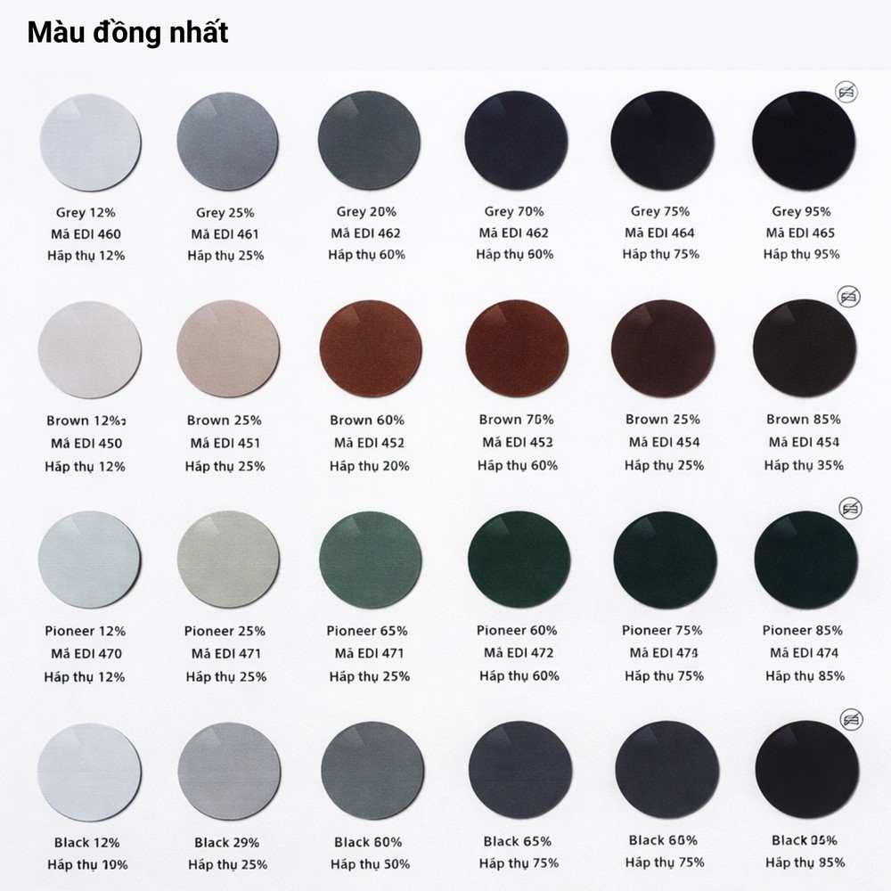 • Tự động chuyển sang màu đậm khi tiếp xúc tia UV ngoài trời