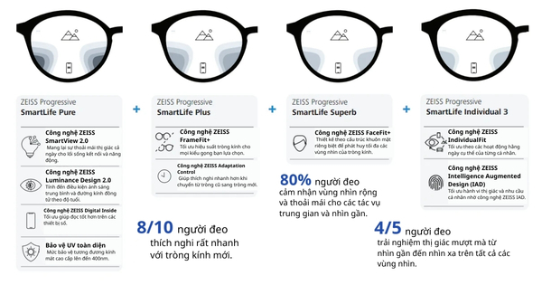 Khi kết hợp cùng UVProtect, BlueGuard và lớp phủ DuraVision Gold, Zeiss SmartLife mang lại khả năng bảo vệ mắt toàn diện và trải nghiệm thị giác cao cấp. Đây là lựa chọn lý tưởng cho người trẻ, người làm việc văn phòng, học sinh và bất kỳ ai muốn đầu tư lâu dài cho đôi mắt. Zeiss SmartLife kính đơn tròng không chỉ là tròng kính, mà là giải pháp thị lực thông minh cho tương lai.